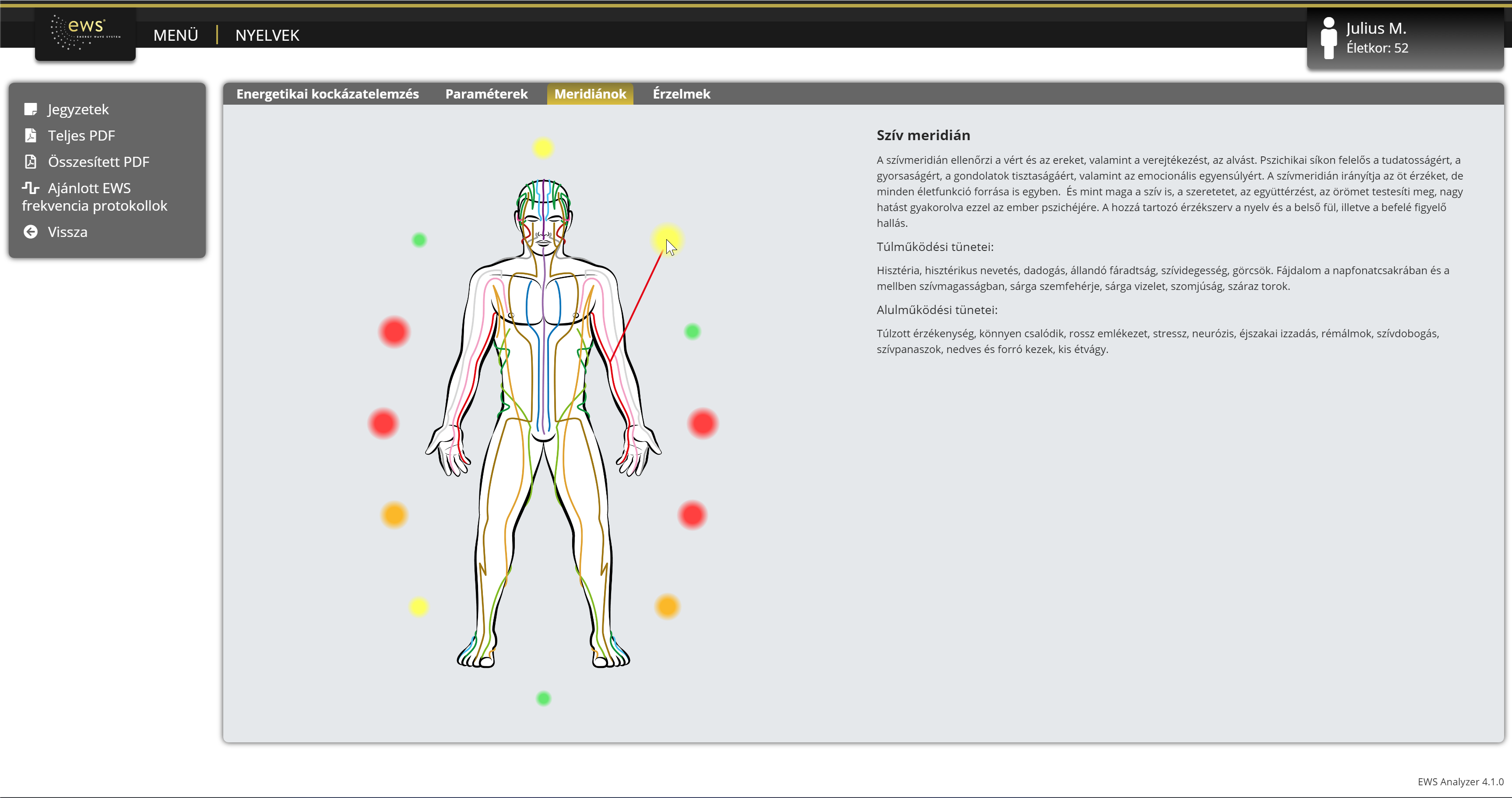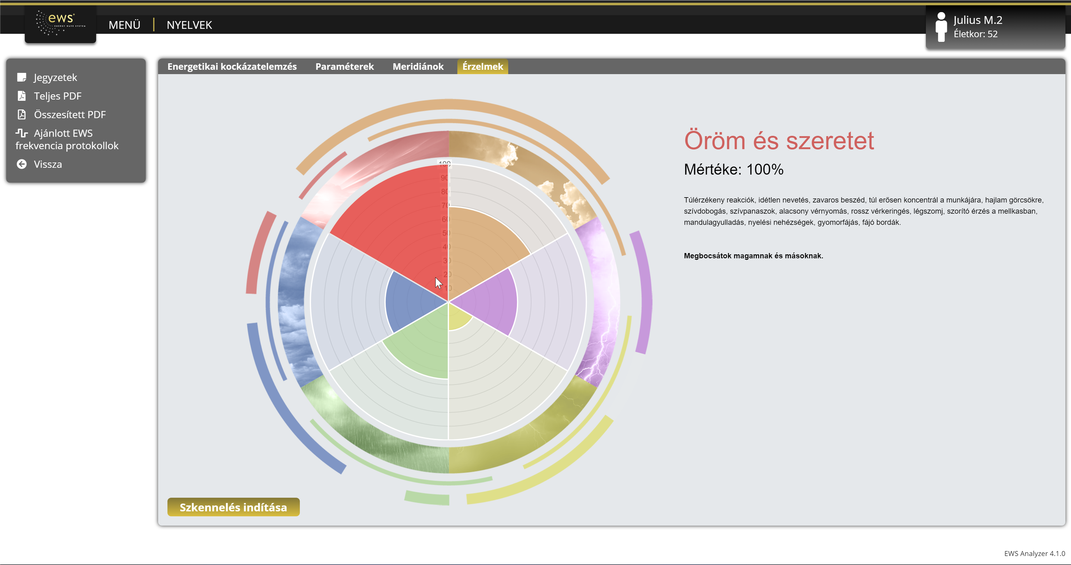 A készülék/program használatával a pillanatnyi energetikai állapotunkat mérhetjük fel.