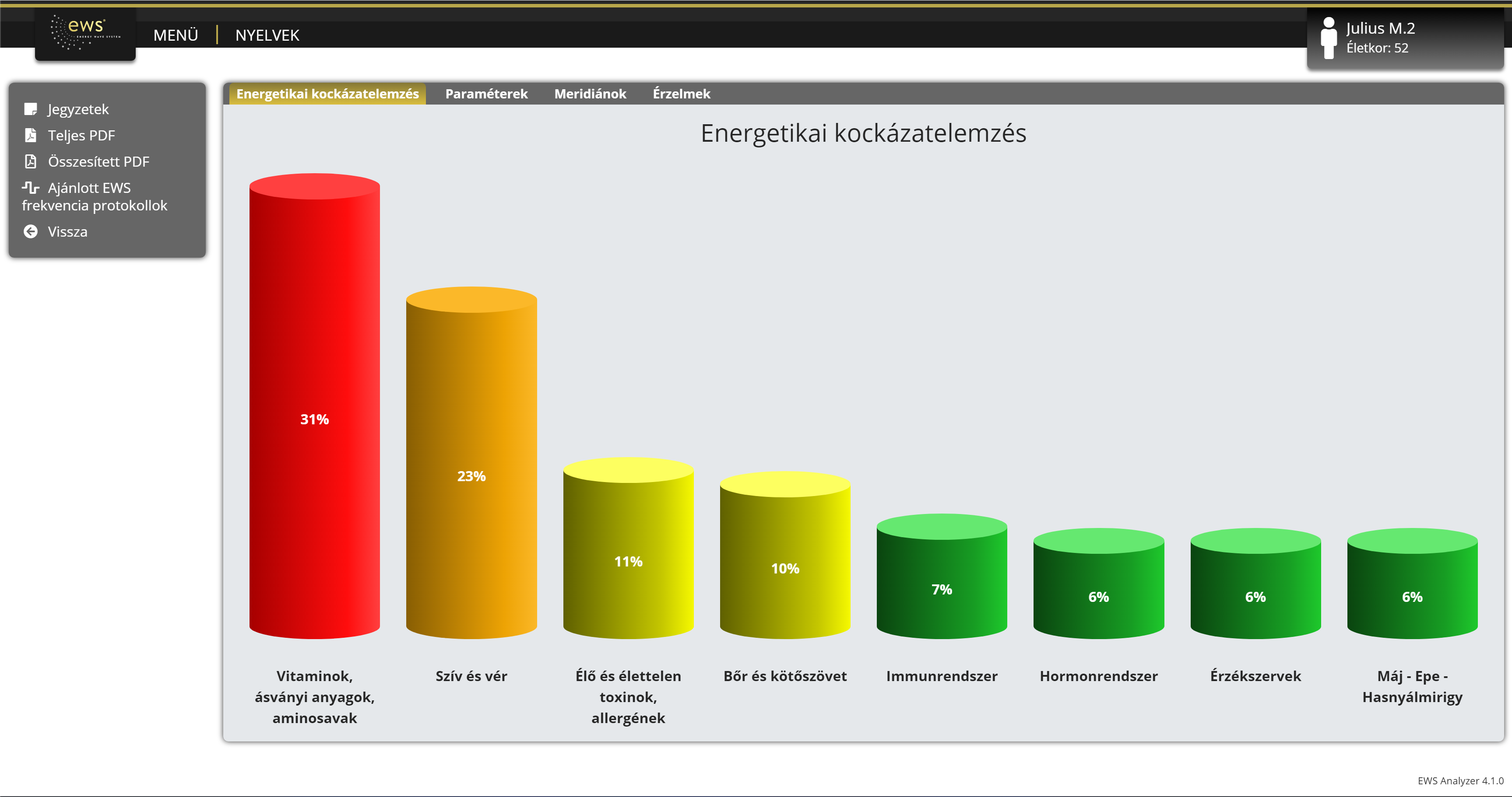 Az EWS Analyzer felmérési eredményei alapján a következőkről kaphatunk részletes energetikai információt: